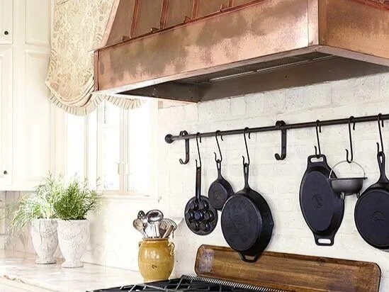 Metal accents, metal doors, metal cabinets: Lustrous surfaces lend a sheen to the current crop of home design trends. Often dumped into the "contemporary finish" category, the newest use of metals has a stylistically diverse range as exemplified by this traditional kitchen. To keep metal from overwhelming a space, use it in small doses or as a focal point and balance it with contrasting textures and colors.