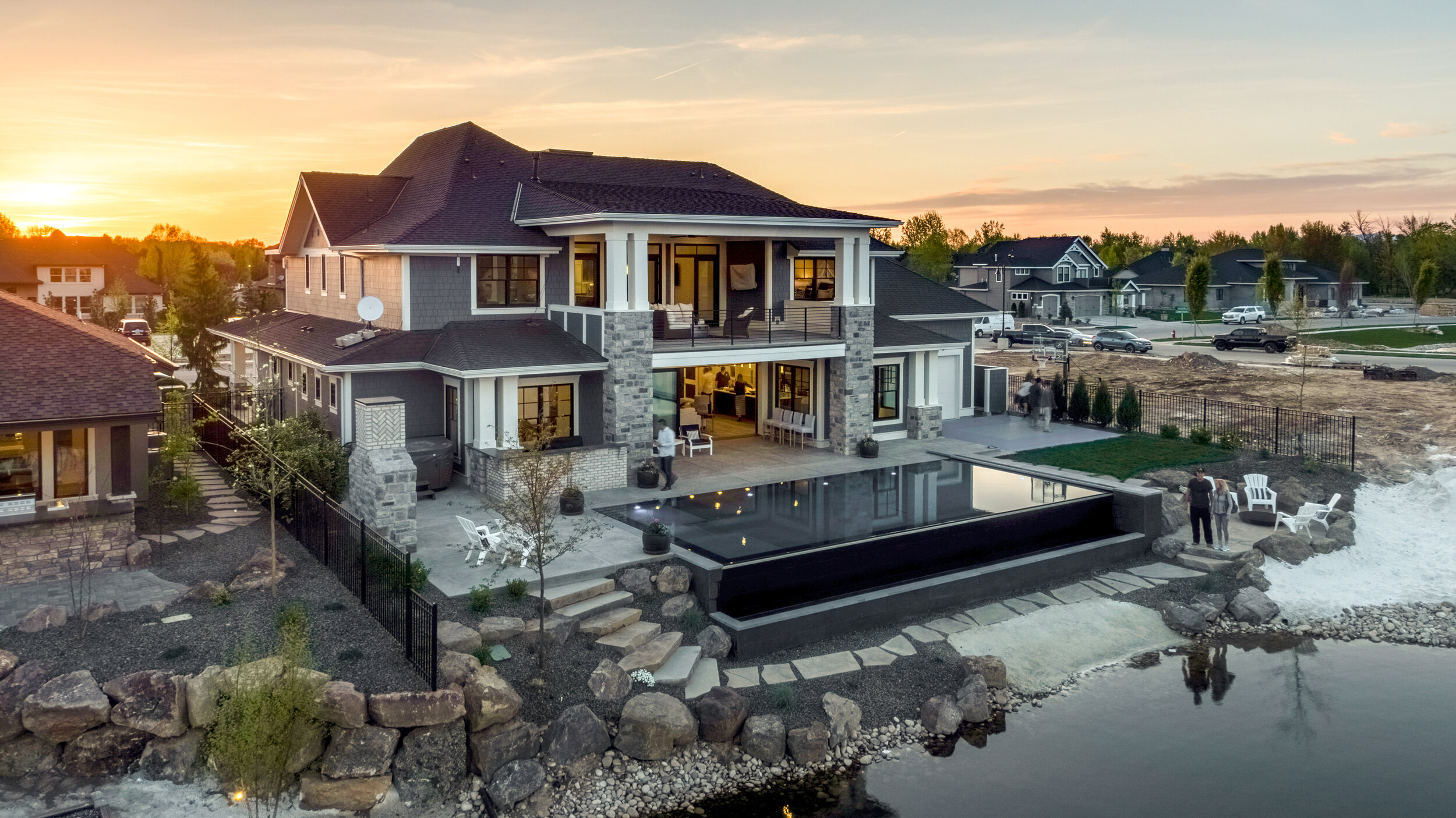 Enjoy the million dollar view from this gorgeous Legacy Homes 2019 Parade of Homes model. Enjoy many areas of outdoor living with upper and lower covered decks and patios overlooking the community's main water feature. "The Carlsbad" is a cape-cod inspired home with hardwoods throughout, exquisite trim details,bonus room w/ additional theatre room. Two master suites, formal dining and water views matched with Legacy's "wow" factor, this home is your dream come true.